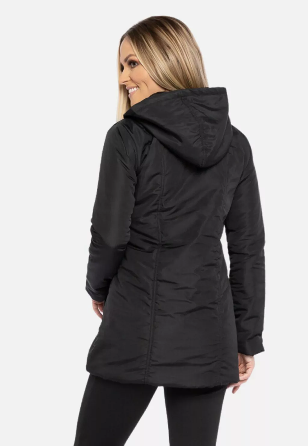 Casaco Carbella com manta interna acolchoada de microfibra 8mm, fecho por zíper e botões.