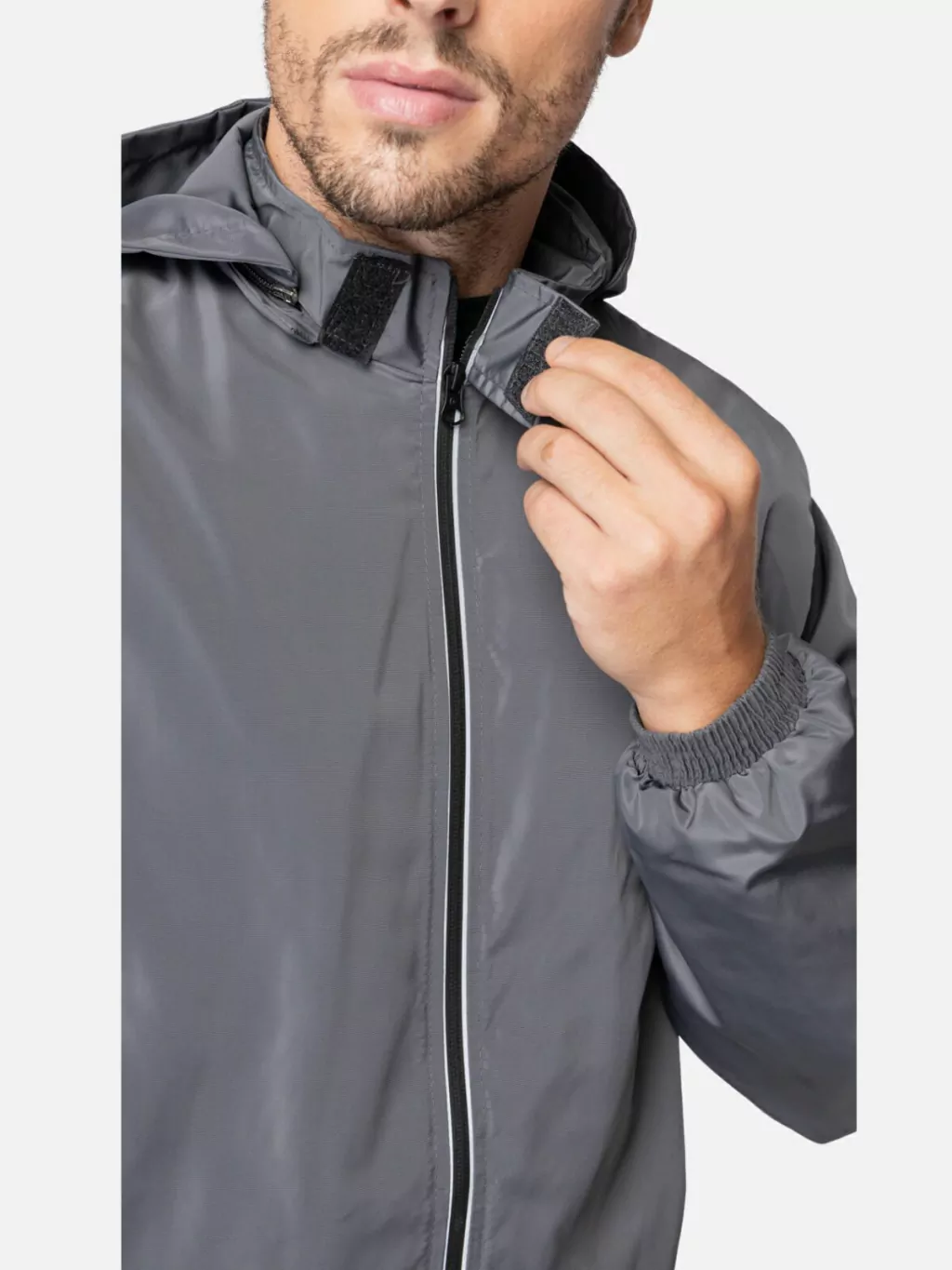 Obs. Fechamento com fecho refletivo, velcro ,capuz e 2 bolsos,1 bolso interno, punho de elástico.