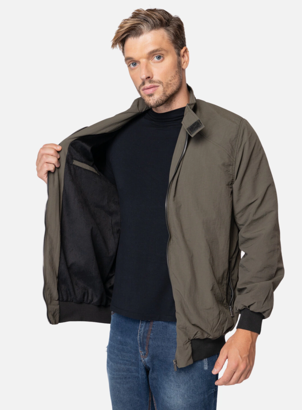 Jaqueta Masculina Taslon Forro de pelo Impermeável com Punho Verde Militar